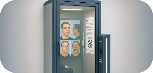A fully enclosed booth that provides a private and quiet experience — ideal for high-traffic public settings.