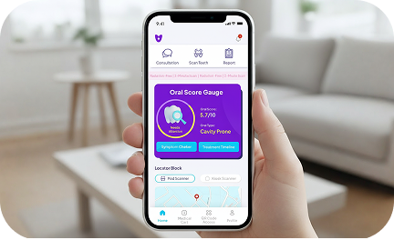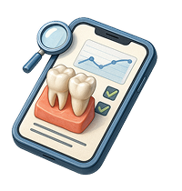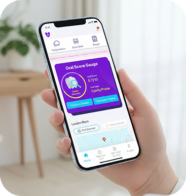 - Track Your Oral Health Score A visual index powered by AI, showing the overall condition of your teeth and gums — updated with each scan.